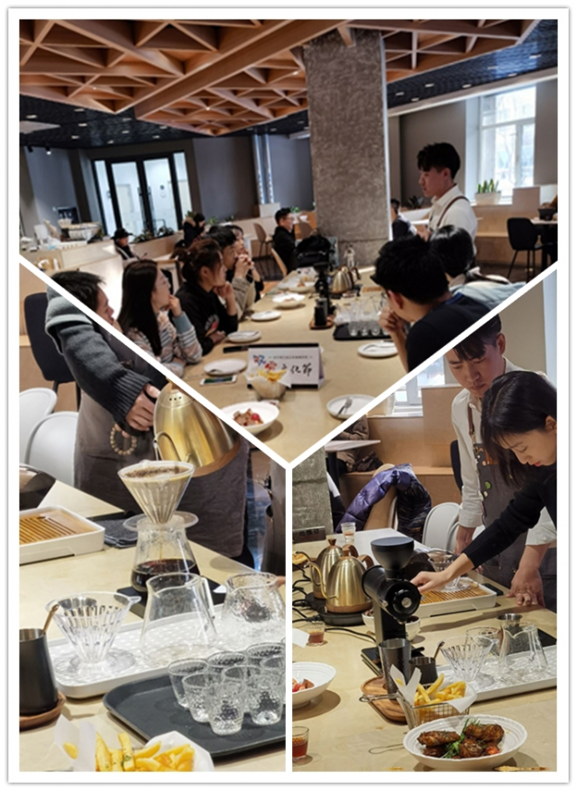 活动开始,主讲嘉宾首先介绍了此次活动的流程安排。通过面对面交流方式向同学们介绍了单品咖啡文化、传授了咖啡制作知识,并现场冲调制作单品咖啡,逐项步骤讲解提示咖啡制作过程的注意事项。随后,现场同学们轮流上场体验,主讲嘉宾在一旁细心指导,同学们亲手制作了一杯杯浓郁醇香的咖啡。