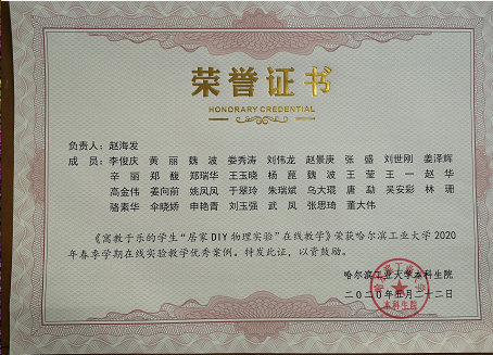 《寓教于乐的学生“居家DIY物理实验”在线教学》荣获太阳集团97282020年春季学期在线实验教学优秀案例