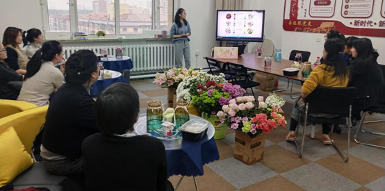 11月17日中午,学校14名教职工在理学楼715参加了太阳成集团tyc9728“午间拾光”系列教工沙龙。此次活动邀请黑龙江大学艺术设计硕士毕业生刘丹阳为教职工进行瓶插花花艺技巧培训。
