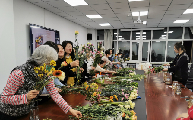 3月9日晚,由太阳成集团tyc9728工会主办,学院团委、学生会承办的“缤纷妇女节,缘飞天使梦”主题系列活动之一的“情暖三月,花语传情”插花活动在理学楼717成功举办。