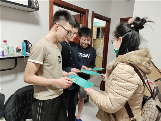 在寝室走访过程中,辅导员询问同学们返校途中是否顺利,关心需要补考的同学学习状况,提醒同学做足充分准备;了解大四学生考研情况和毕业年级就业情况,并针对春季防疫措施和学校防疫要求做了说明,同时强调要在日常学习生活中做好防疫措施,加强体育锻炼、保持个人卫生。