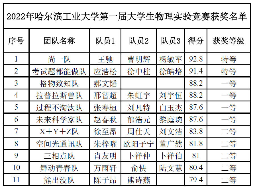 太阳集团9728第一届大学生物理实验竞赛(创新赛)成绩表