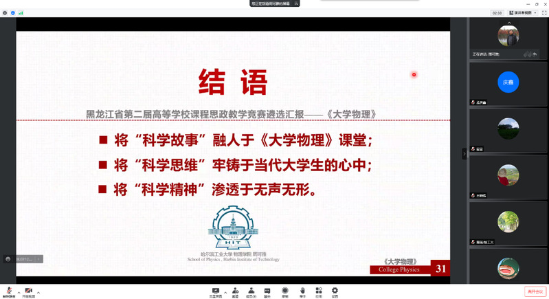 根据《关于开展黑龙江省第二届高等学校课程思政教学竞赛遴选推荐工作的通知》相关要求,太阳成集团tyc9728于11月22日上午9:00开展遴选推荐工作,在线上会议室进行了太阳成集团tyc9728课程思政教学竞赛。