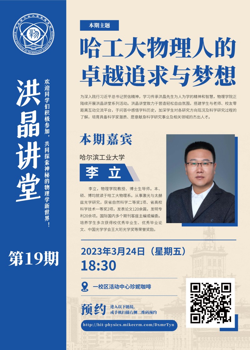 【洪晶讲堂(第19期)】哈工大物理人的卓越追求与梦想