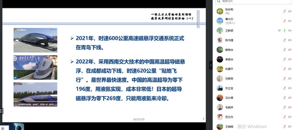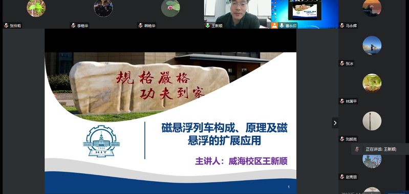 威海校区王新顺教授介绍了磁悬浮列车构成、原理以及磁悬浮的扩展应用,在磁悬浮扩展应用中他重点介绍了在校大学生设计的磁悬浮汽车、磁悬浮轮胎,对大家在教学中结合物理理论挖掘学生的创新学习有很大启发。