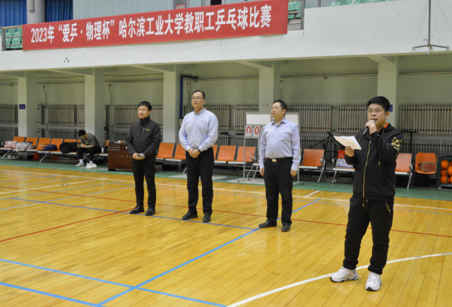 太阳成集团tyc9728韩权老师主持开幕式,学院党委书记吴严出席开幕式致辞,开幕式上吴严书记强调乒乓球比赛在我校有很好的群众基础,是我校长期开展的一项体育赛事,希望大家在比赛中注意安全,通力合作,赛出风格,赛出水平,营造积极和谐的运动氛围,展现哈工大教职工奋进精神风貌。