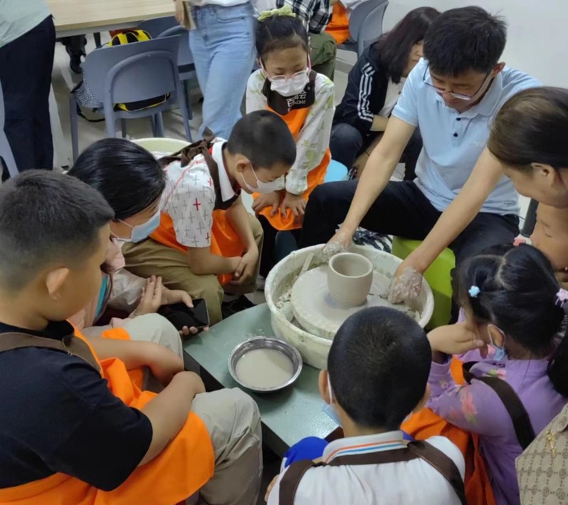 活动分为陶艺区和手工区,孩子们根据各自的爱好分区轮流进行体验。