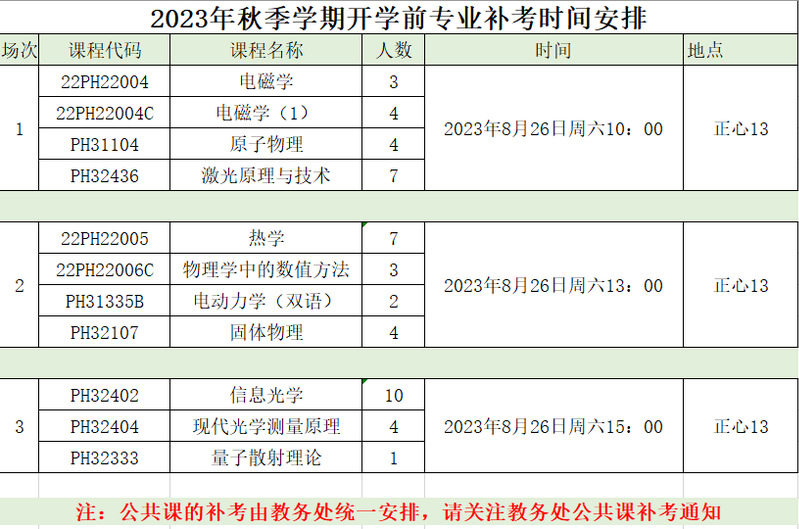 2023年秋季学期开学前本科(专业课)补、缓考时间安排