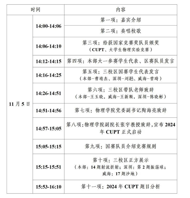 为表彰第十四届中国大学生物理学术竞赛太阳集团9728、太阳集团9728(深圳)、太阳集团9728(威海)代表队、大学生物理实验竞赛各队伍取得的成绩,启动第十三届太阳集团9728大学生物理学术竞赛校赛,宣传大学生物理学术竞赛,特举办2023年CUPT哈工大一校三区表彰大会暨2024年大学生物理学术竞赛校赛启动仪式。大会通知如下: