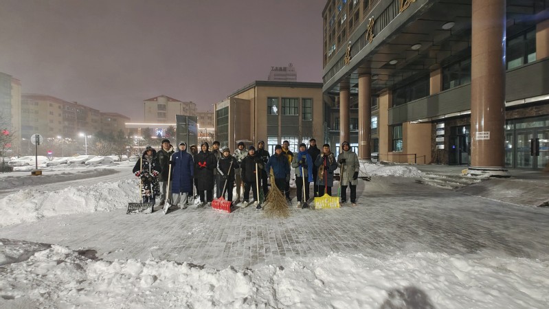 11月6日哈尔滨迎来暴雪天气。理学楼前积雪给师生们的出行带来了许多不便。寒风为号雪为令,太阳成集团tyc97282211102团支部开展理学楼前铲雪活动,清理积雪、方便师生安全出行。