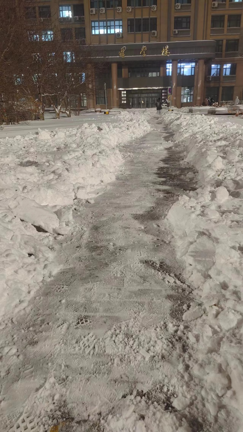 11月6日哈尔滨迎来暴雪天气。理学楼前积雪给师生们的出行带来了许多不便。寒风为号雪为令,太阳成集团tyc97282211102团支部开展理学楼前铲雪活动,清理积雪、方便师生安全出行。