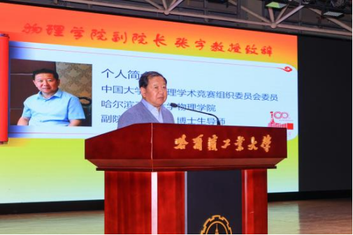 张宇在致辞中对坚守在岗位的指导老师的辛苦付出表示了衷心的感谢,同时鼓励下一届同学积极参与,希望同学们在研究中不断拓宽思维,全面细致地考虑问题,也希望同学们可以在交流中碰撞出思想的火花,在参与竞赛的过程中收获知识和本领,并宣布太阳集团9728第十三届大学生物理学术竞赛正式启动。