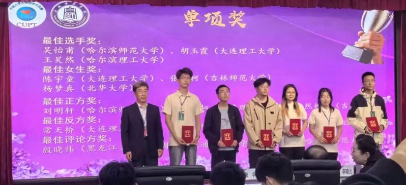 经过四轮对抗赛,由我校程润良,龚姝涵,姚佳余,常天桥,李熹鸣,郑诚锐等6名同学组成的我校代表队一路过关斩将,最终荣获东北地区赛冠军,其中常天桥同学取得了最佳反方的荣誉。