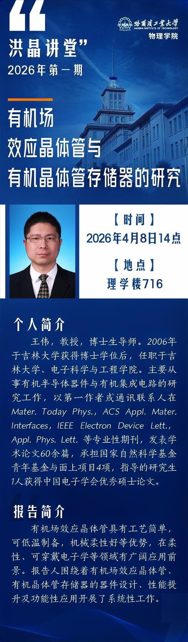 【洪晶讲堂2026年第一期】有机场效应晶体管与有机晶体管存储器的研究