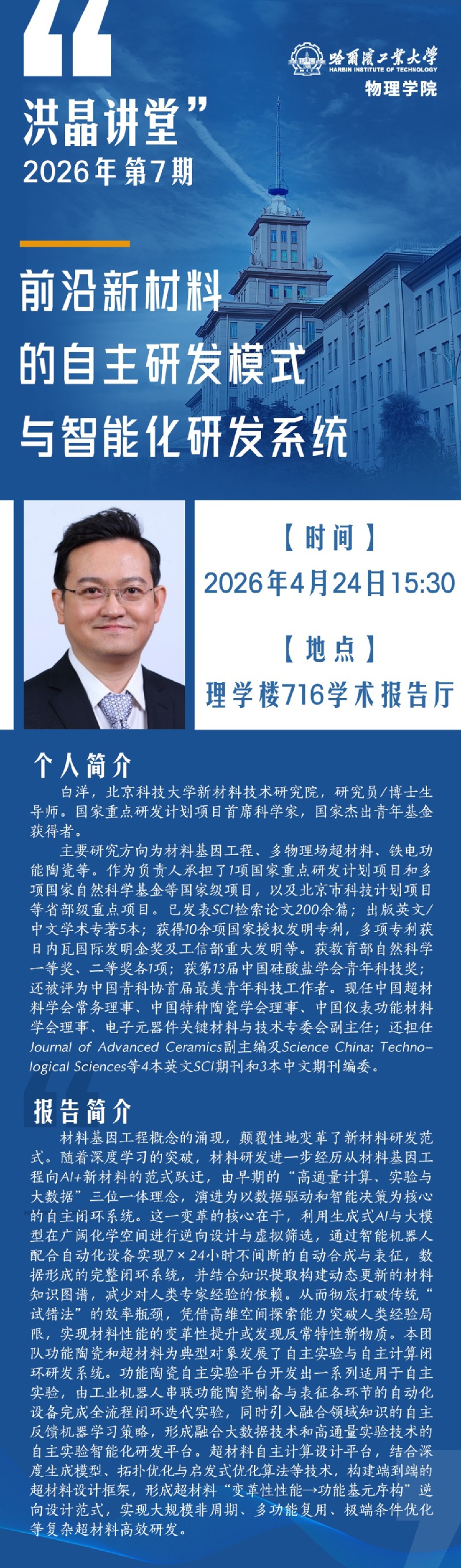 【洪晶讲堂2026年第7期】前沿新材料的自主研发模式与智能化研发系统